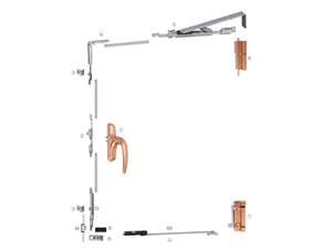 配件執(zhí)手、合頁可通過調節(jié)適用于左、右式門窗。